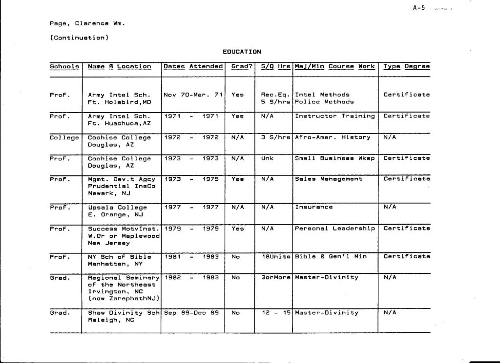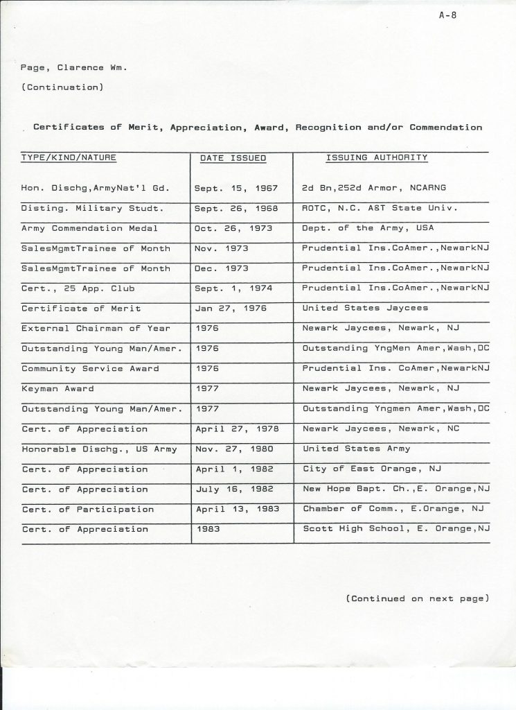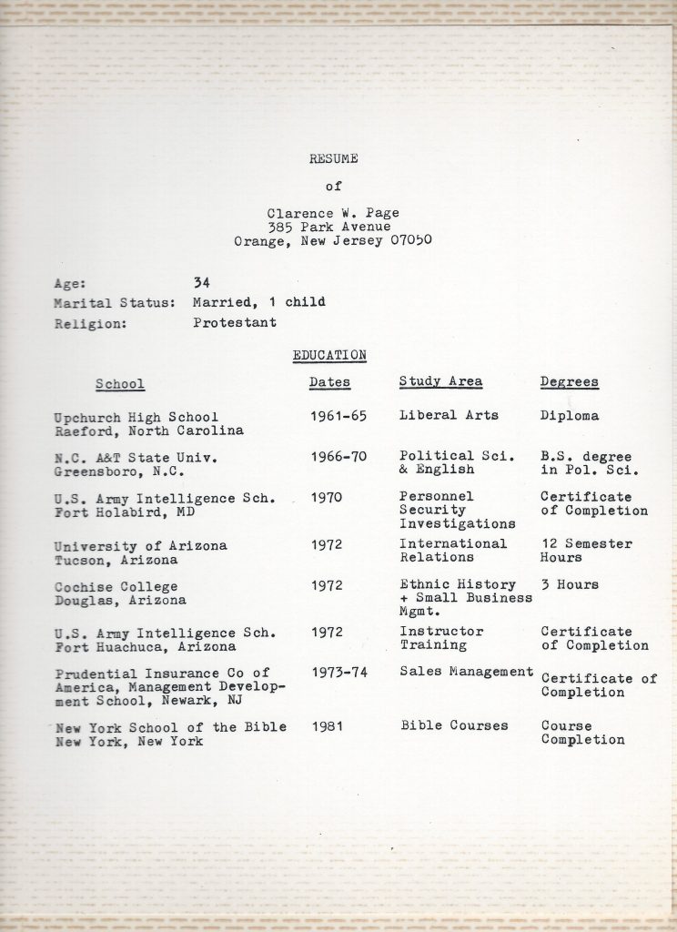 Credentials of Clarence William Page